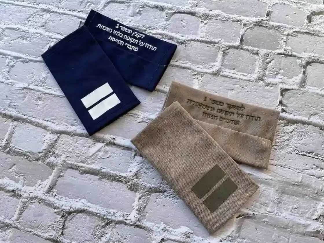 דרגות ב' מודפסות עם רקמת הקדשה, ניתן לרקום על יחידה אחת או שתי היחידות