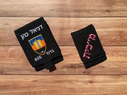 כזל"פ עם רקמה בעיצוב אישי, מתנה מיוחדת שתלווה את מי שמקבל אותה לאורך השירות הצבאי. העיצוב נרקם על בד, נתפר ונדבק באמצעות חומר הדבקה מיוחד עמיד וחזק ביותר. (ראו תמונות) ניתן לתלות על החגורה.