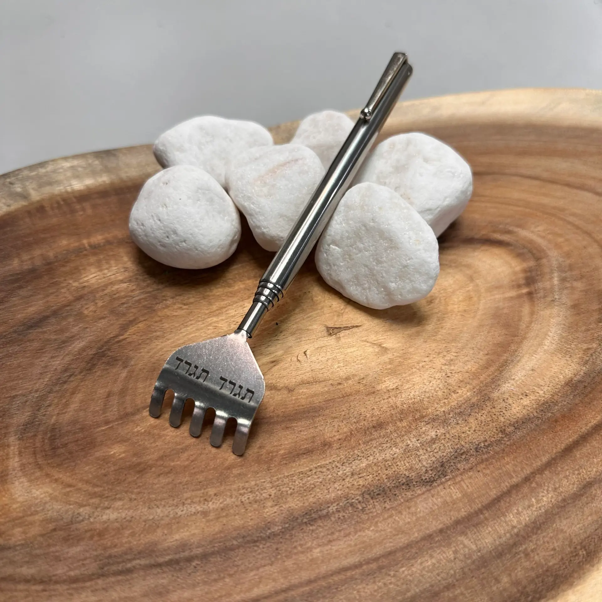 מגרד גב טלסקופי בחריטה אישית. מקופל: 16 ס"מ פתוח: 50 ס"מ